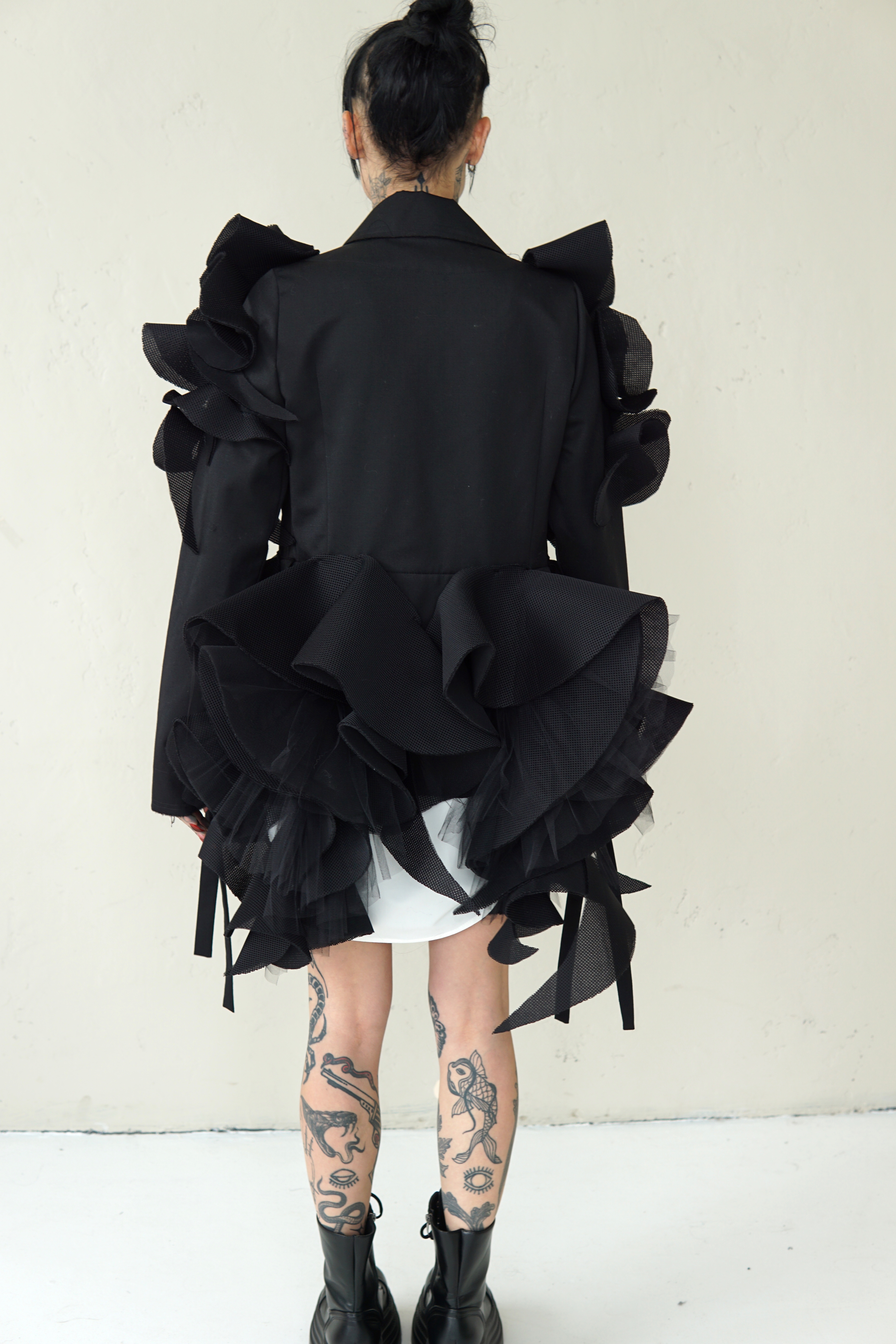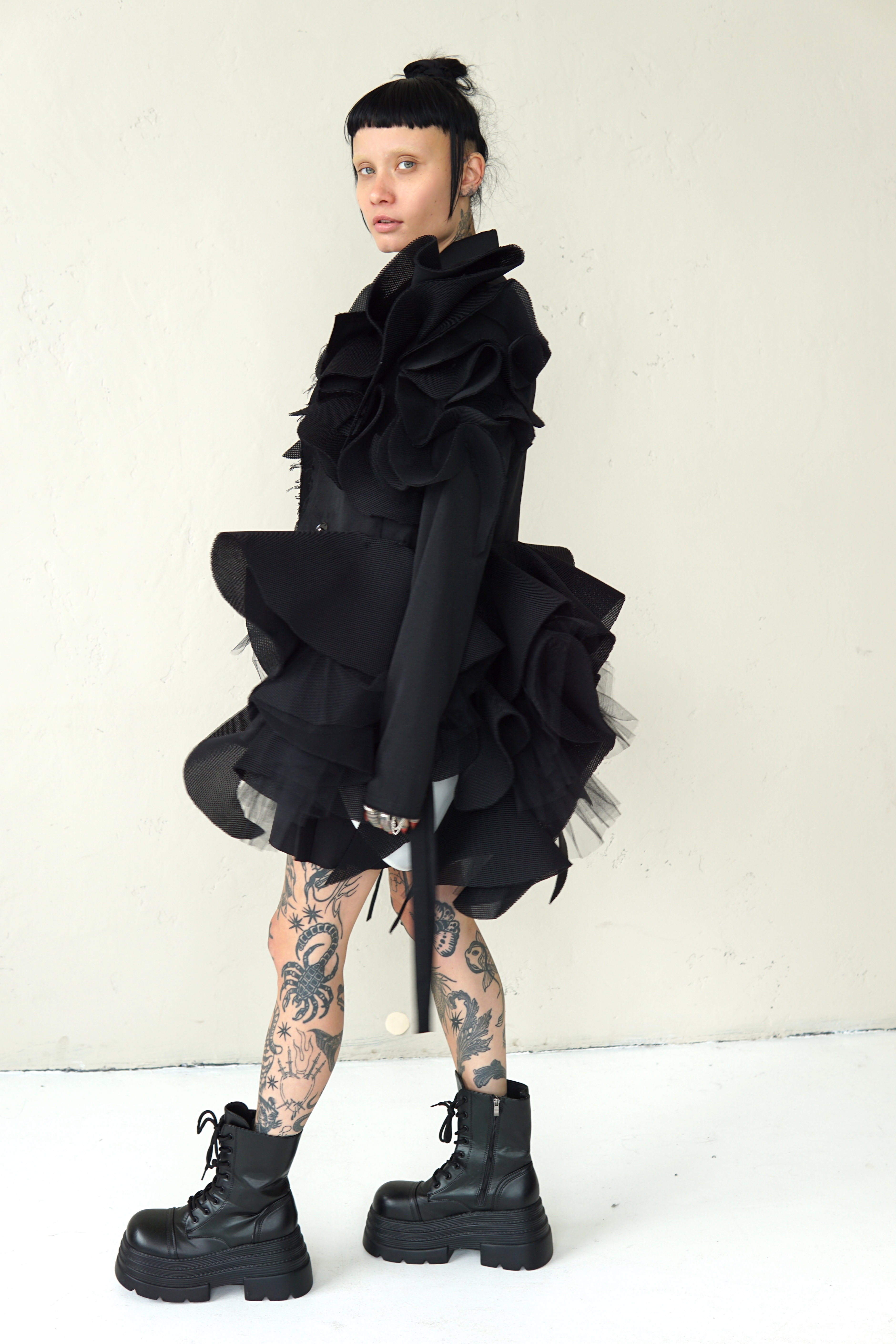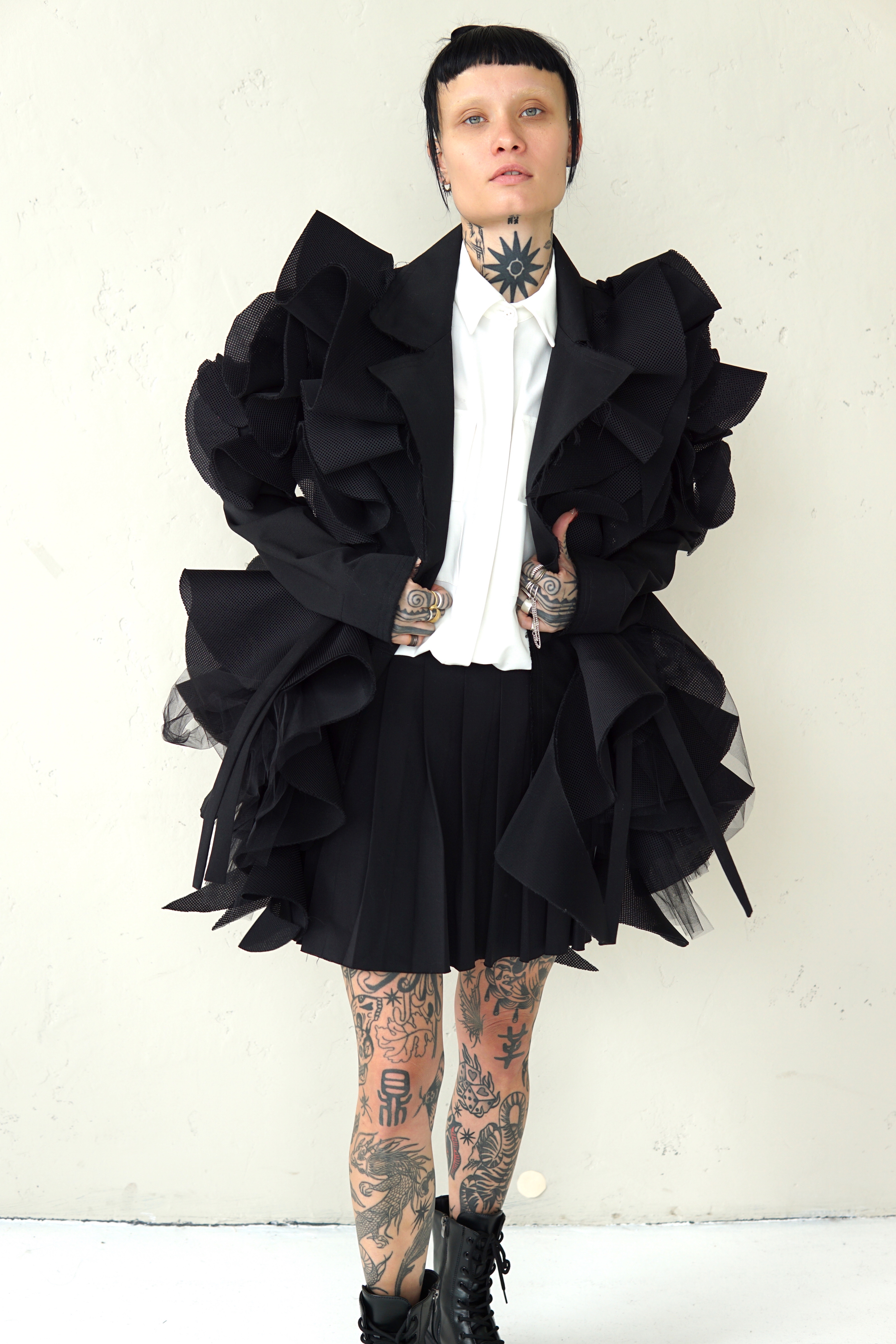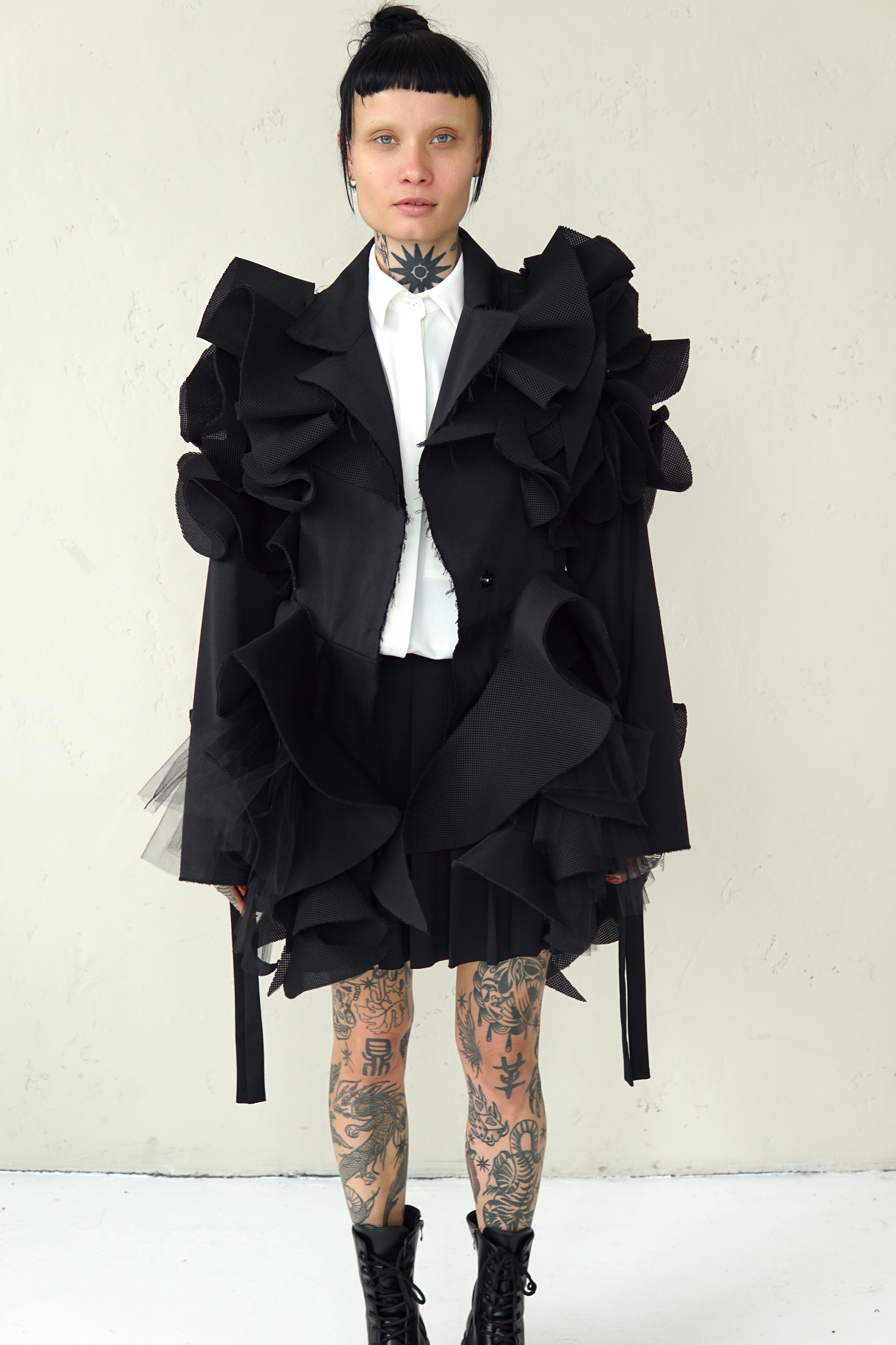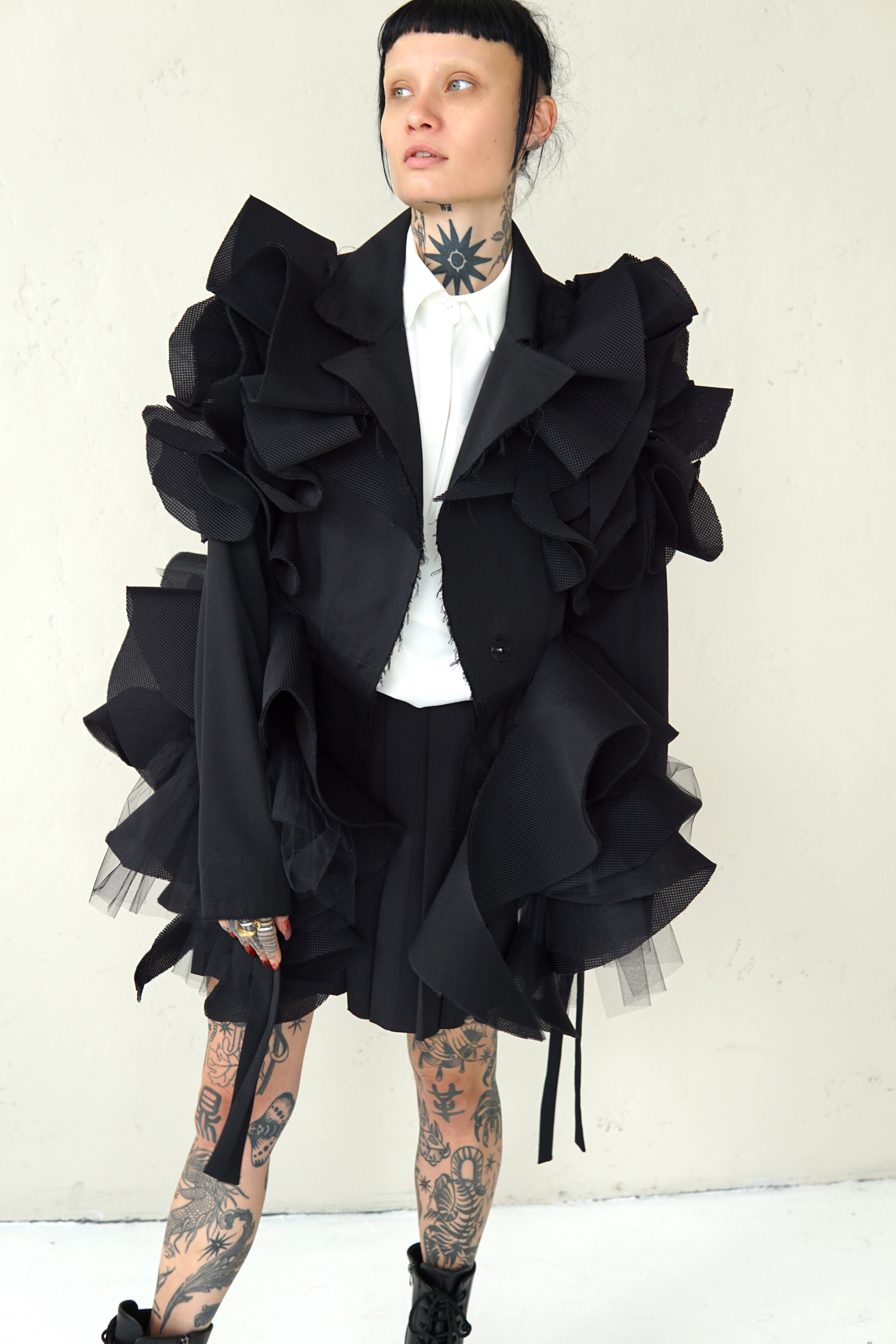 SPECIAL BLACK AVANT-GARDE COAT WITH DETAILS