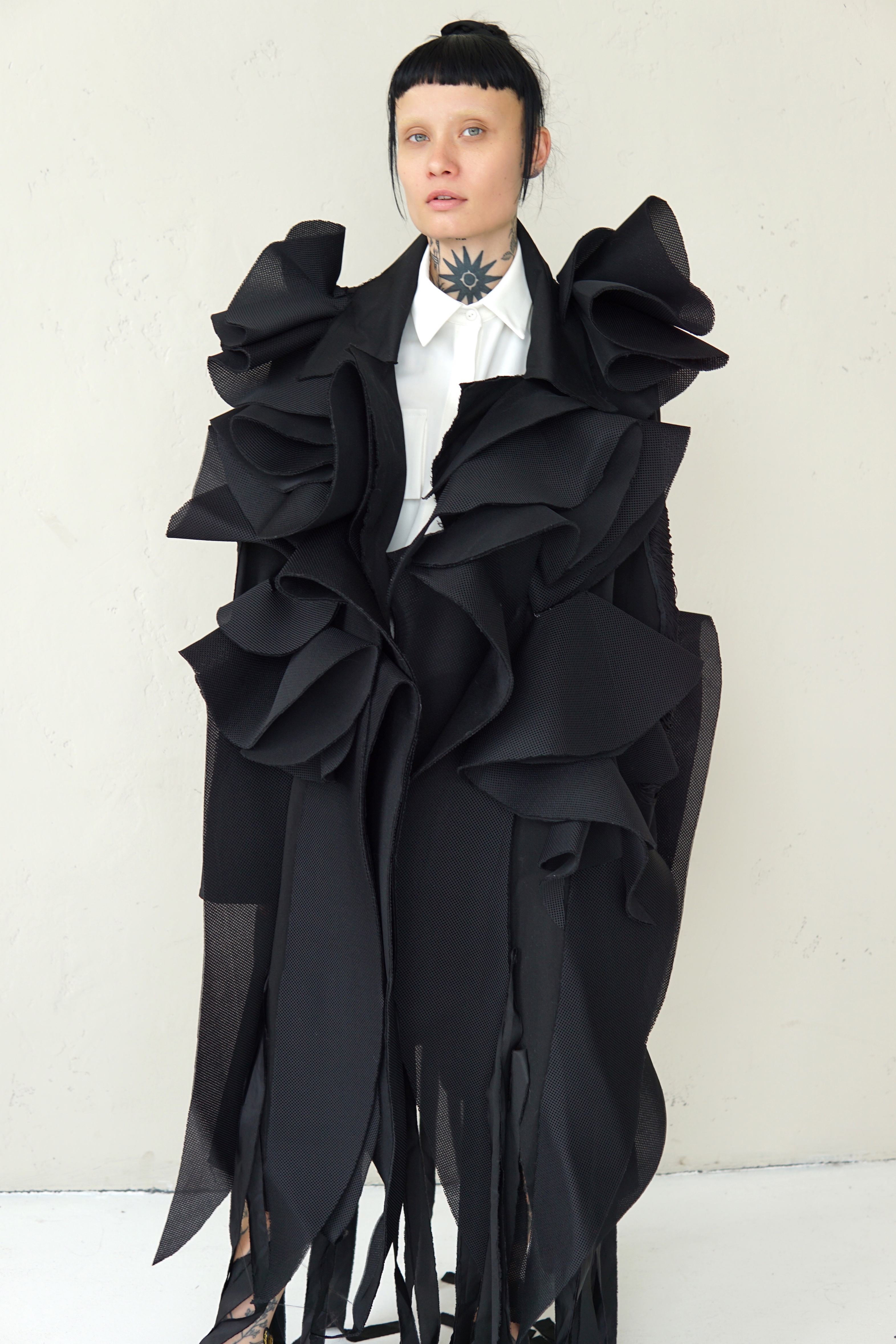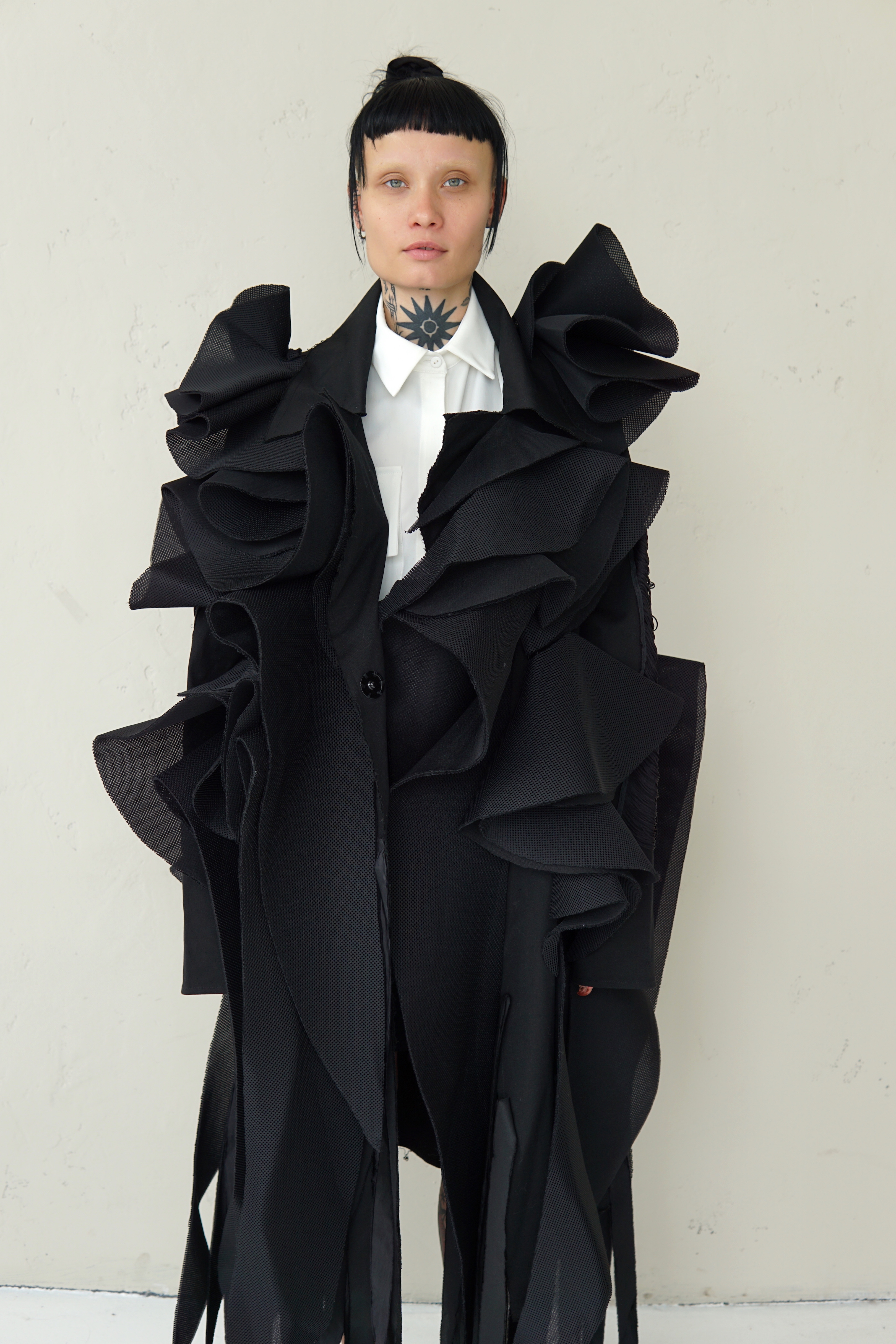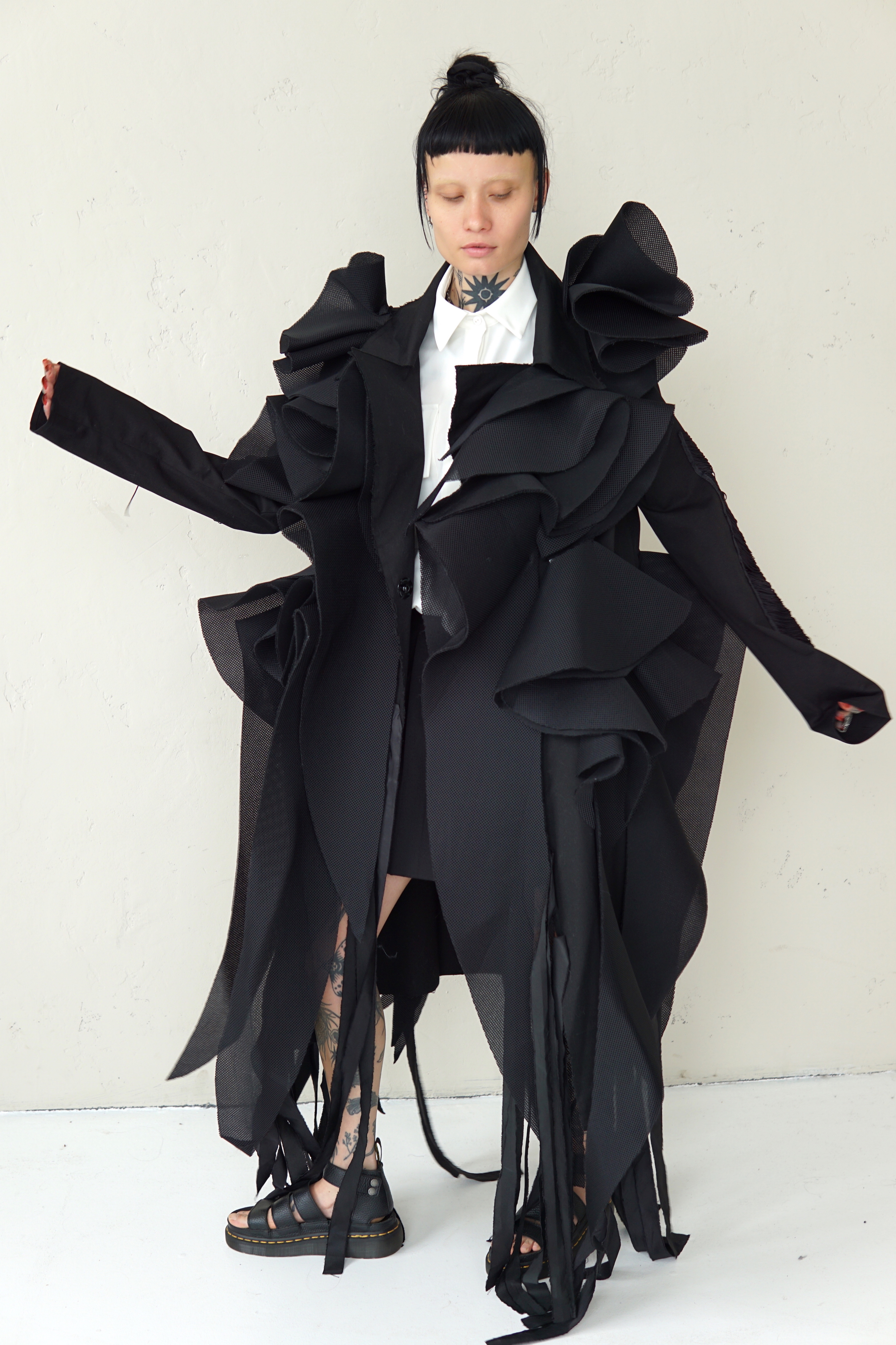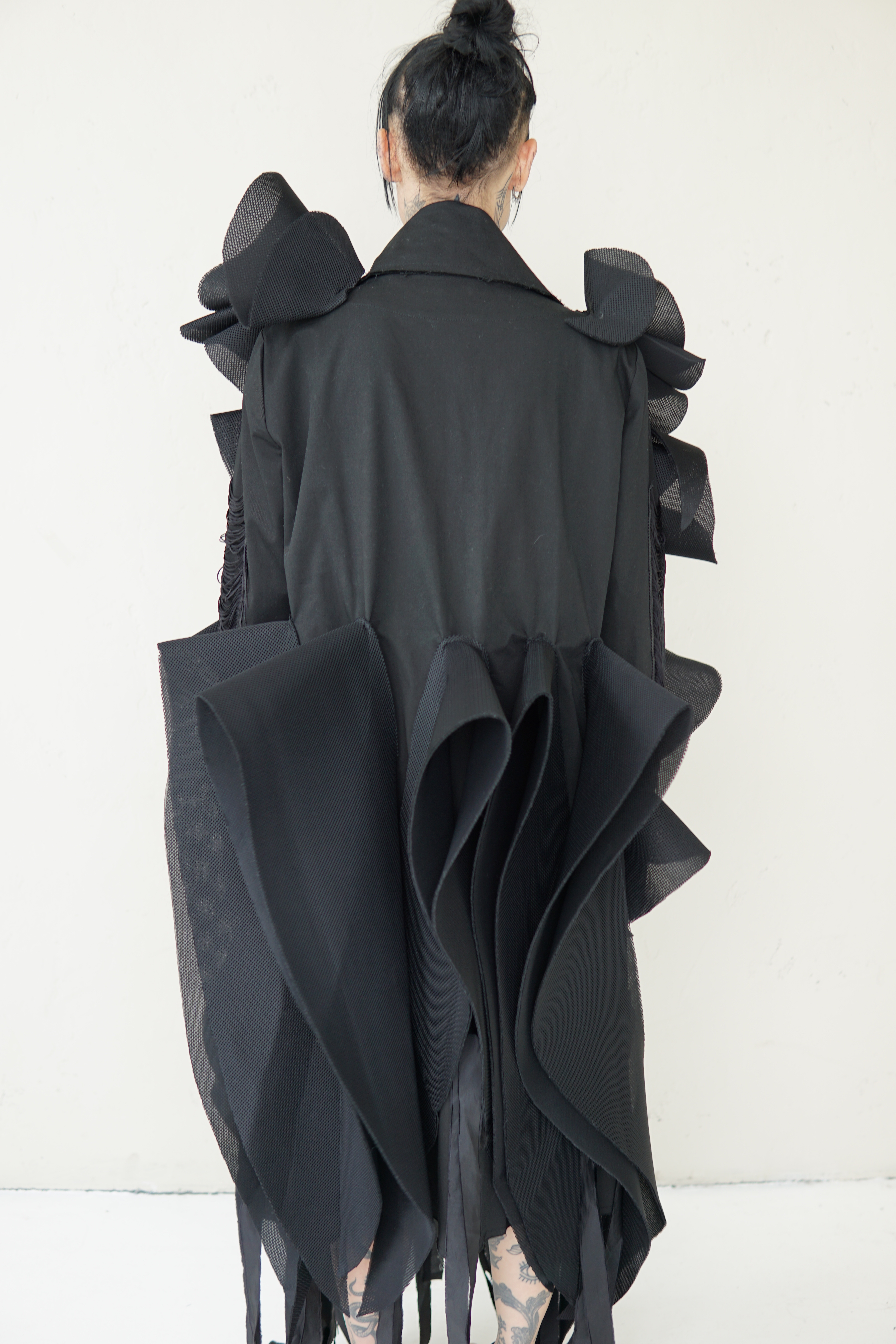 SPECIAL BLACK AVANT-GARDE LONG COAT WITH DETAILS