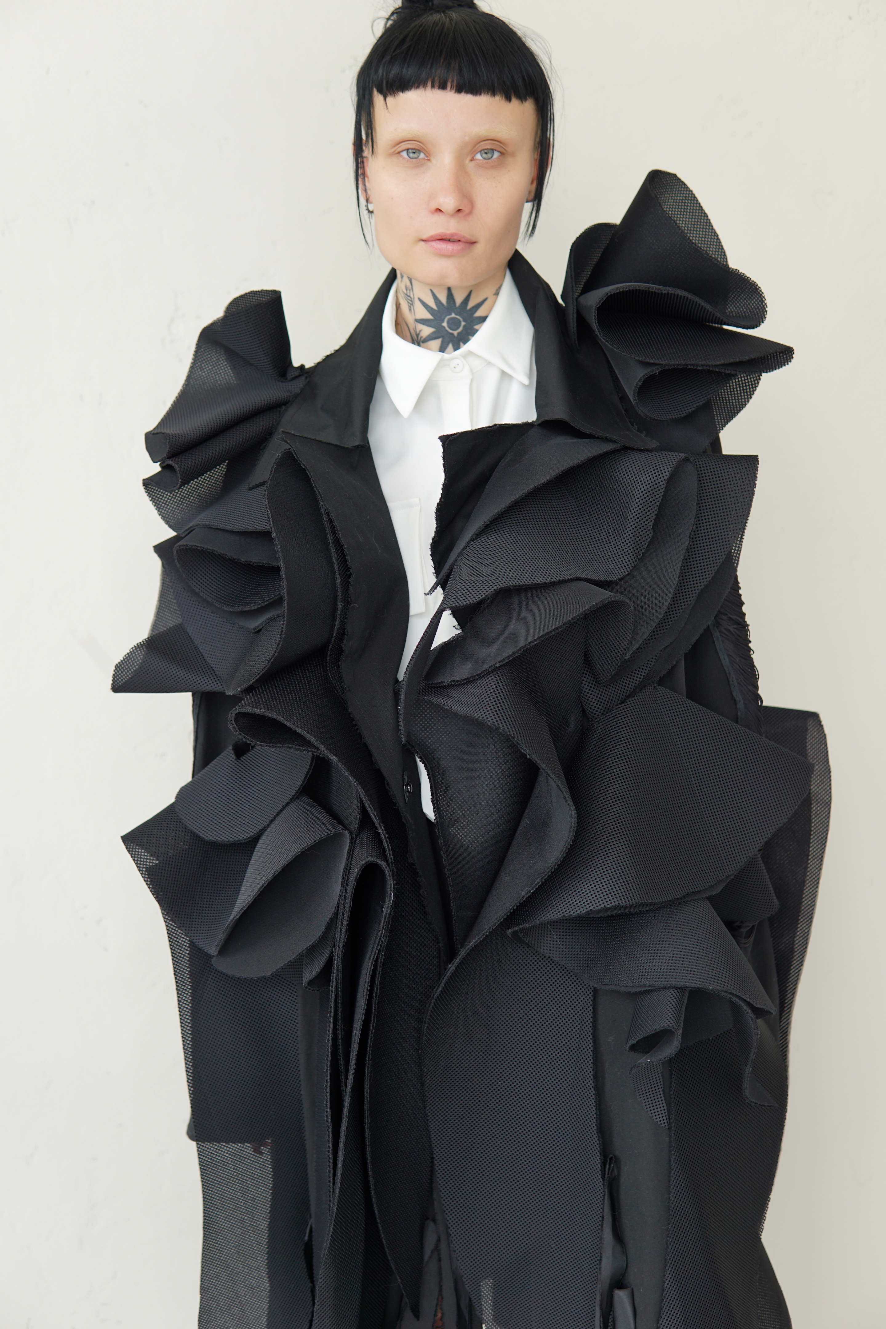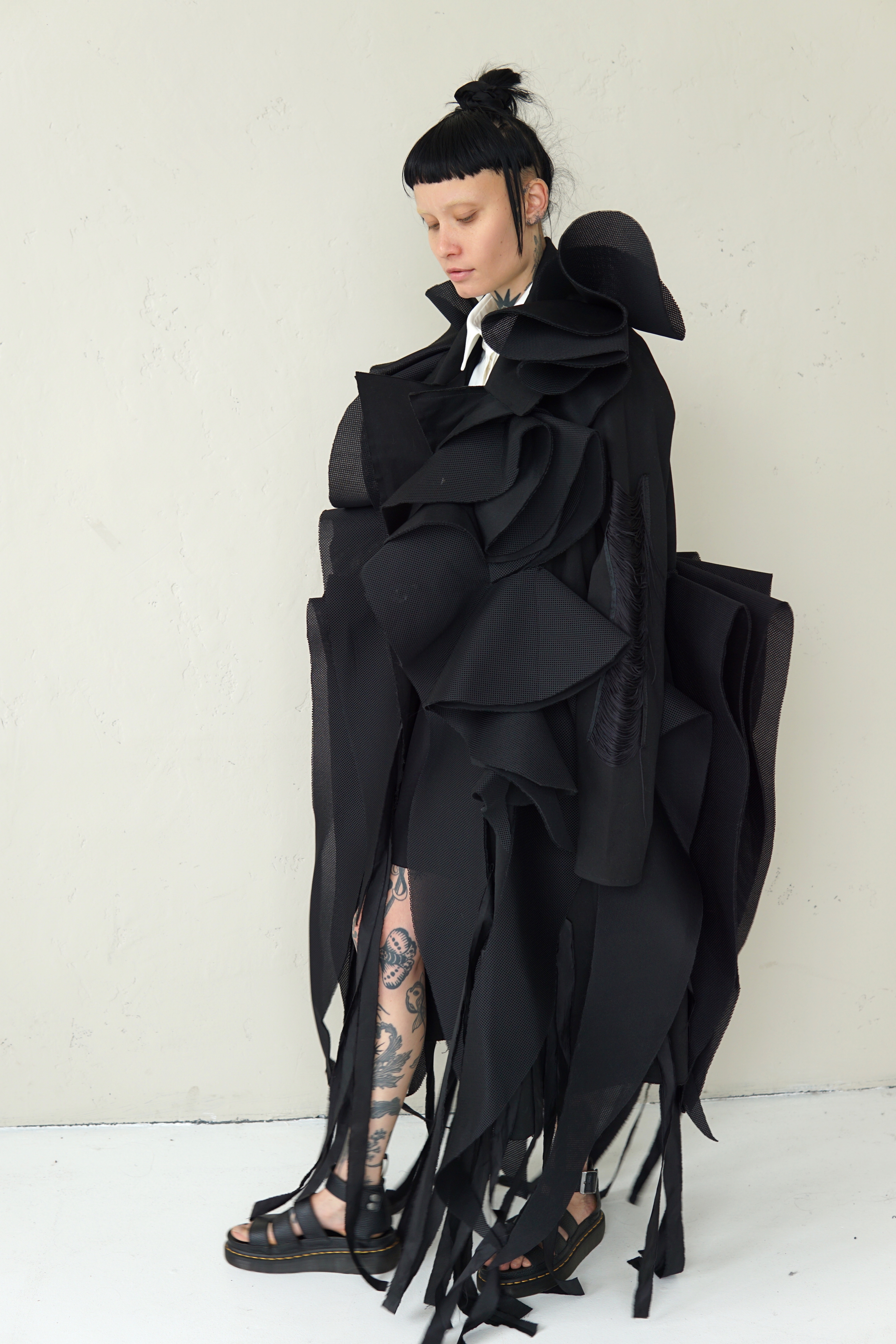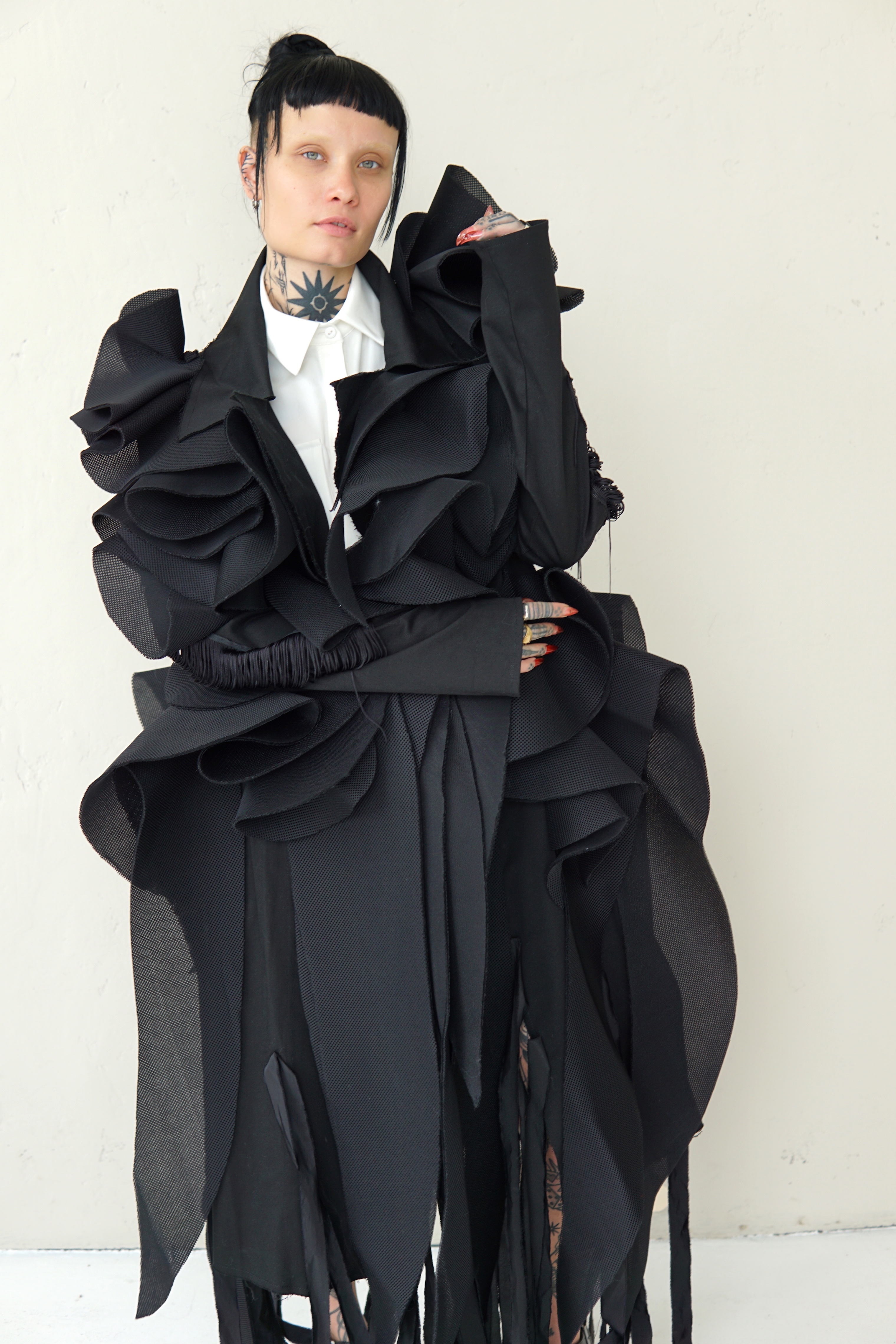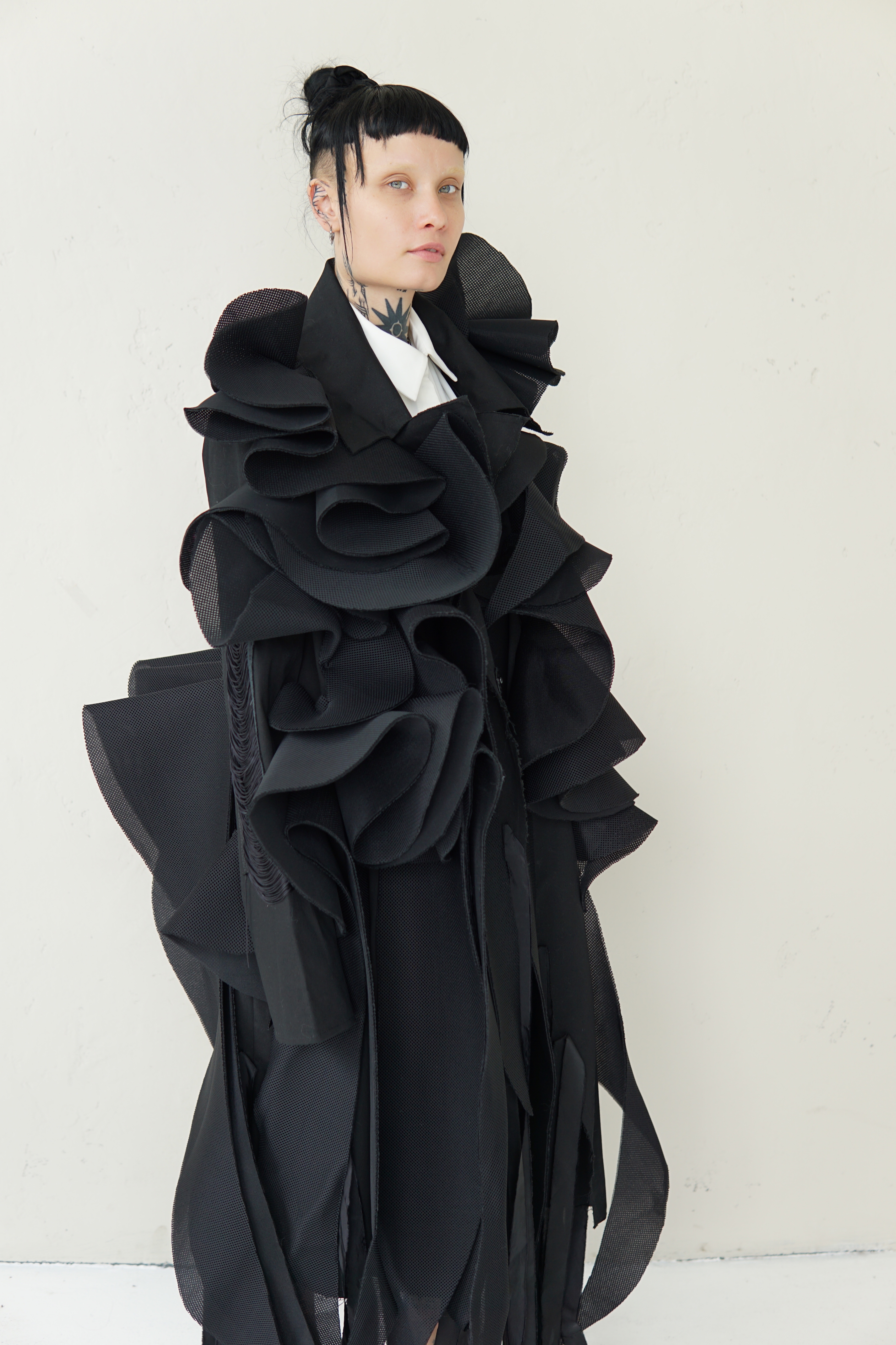 SPECIAL BLACK AVANT-GARDE LONG COAT WITH DETAILS