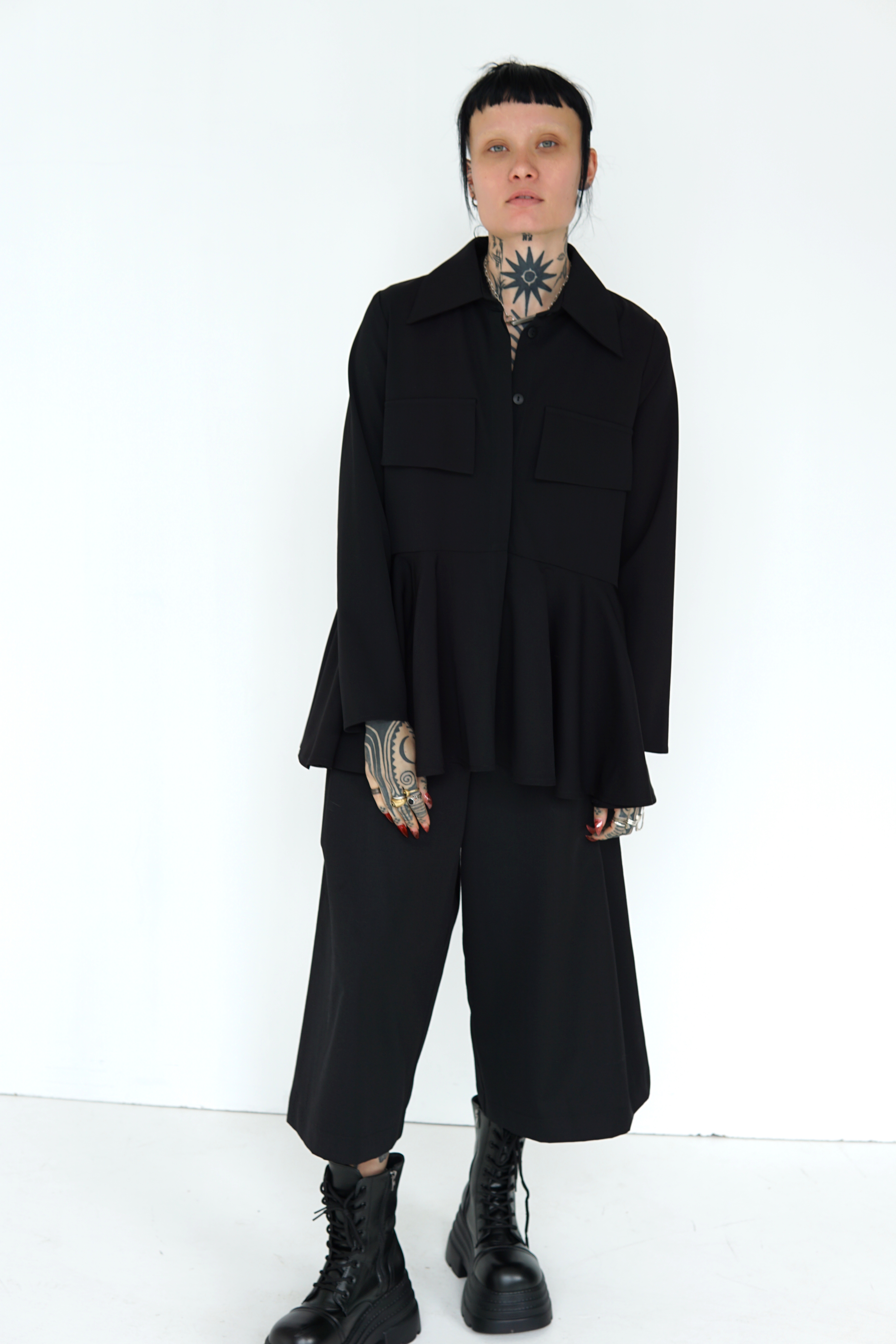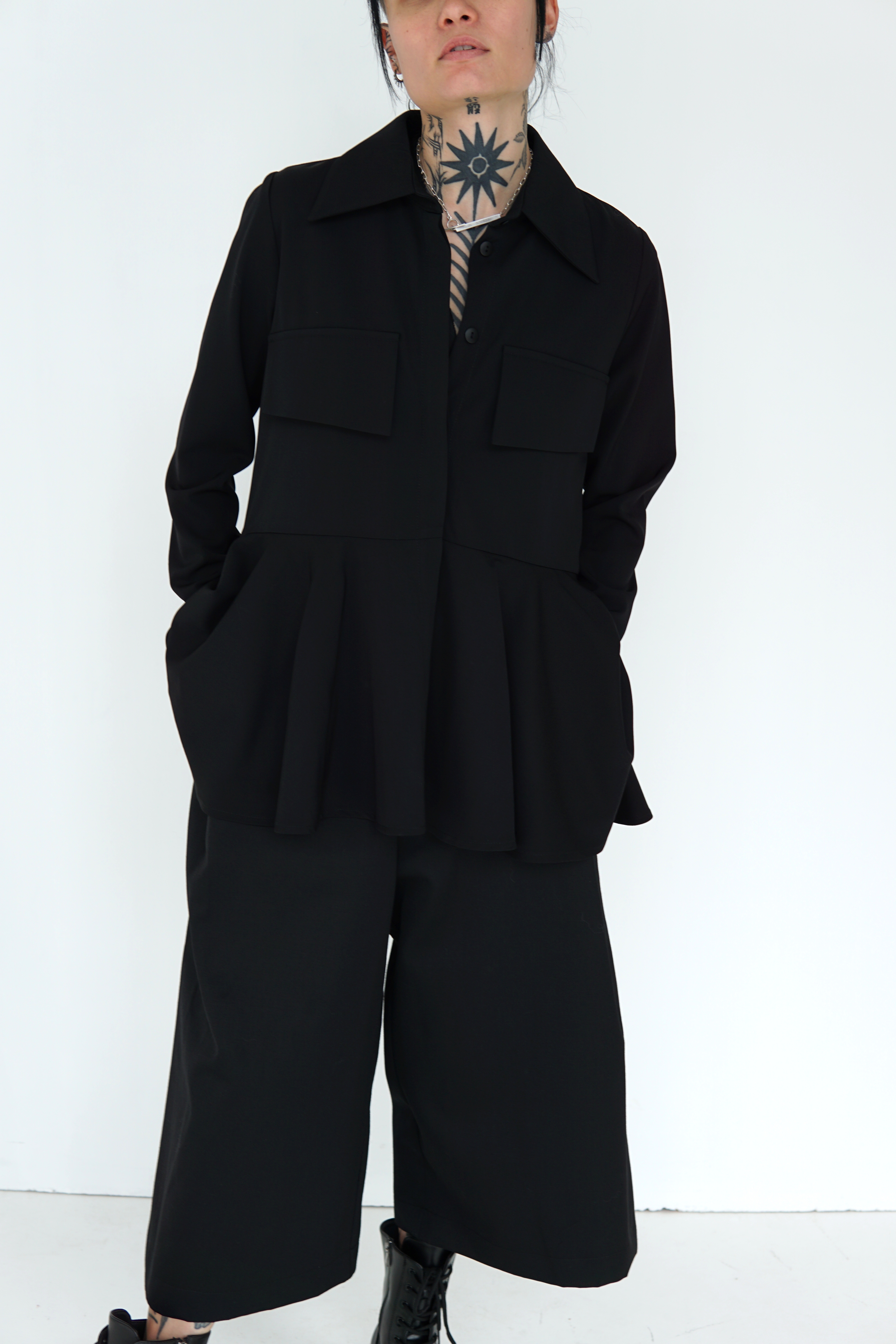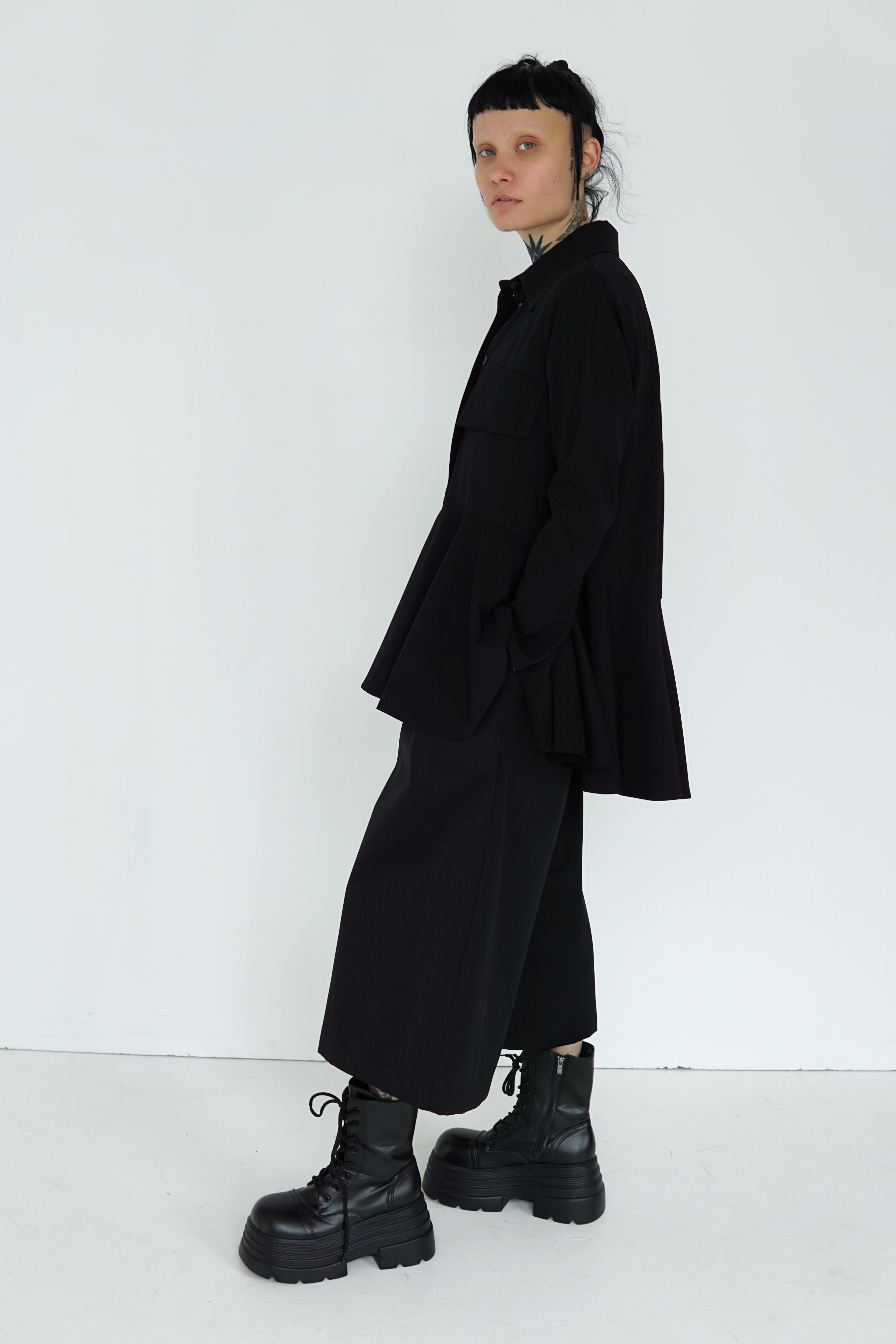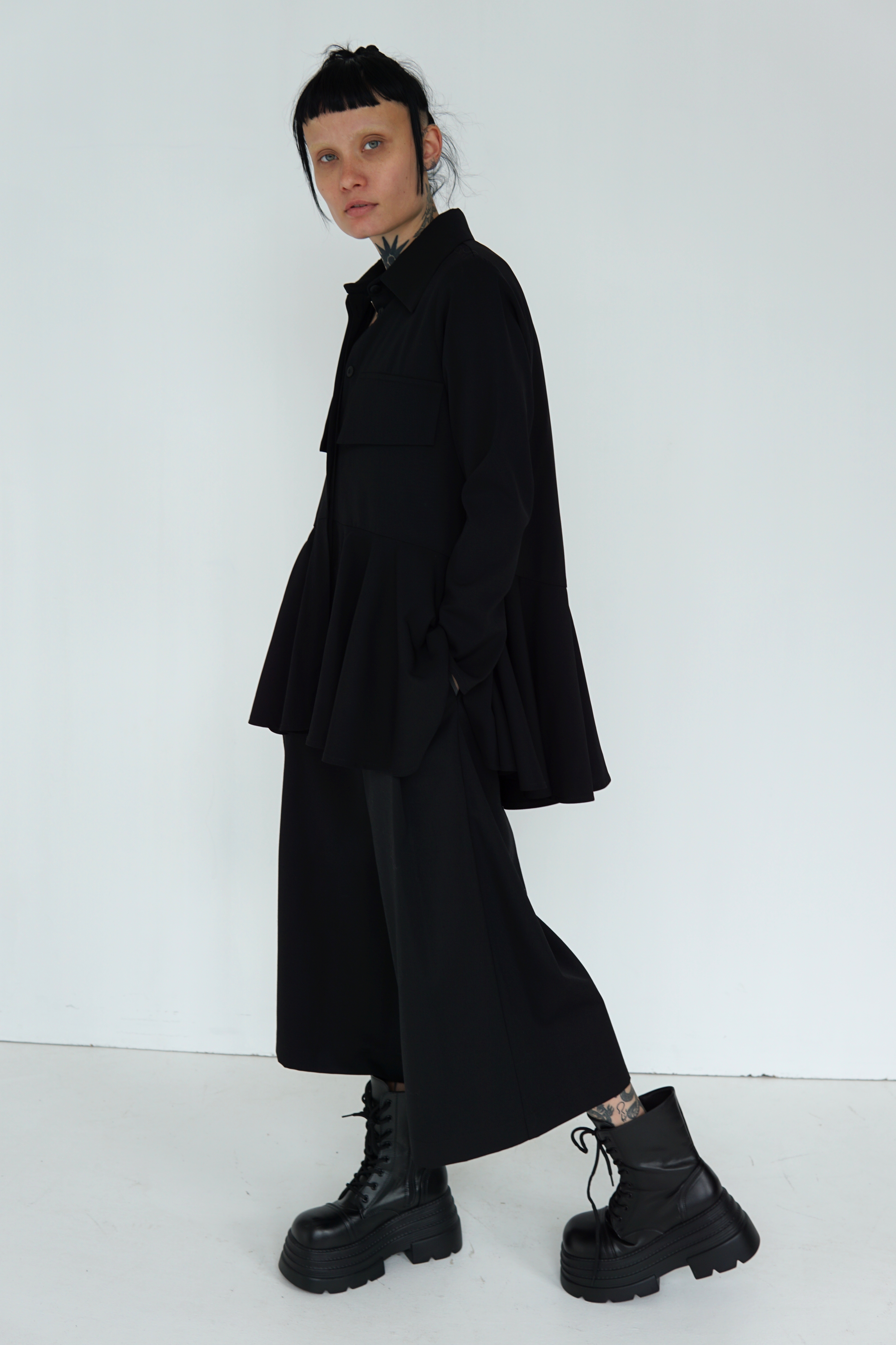 BLACK WOOL FLARED SHIRT