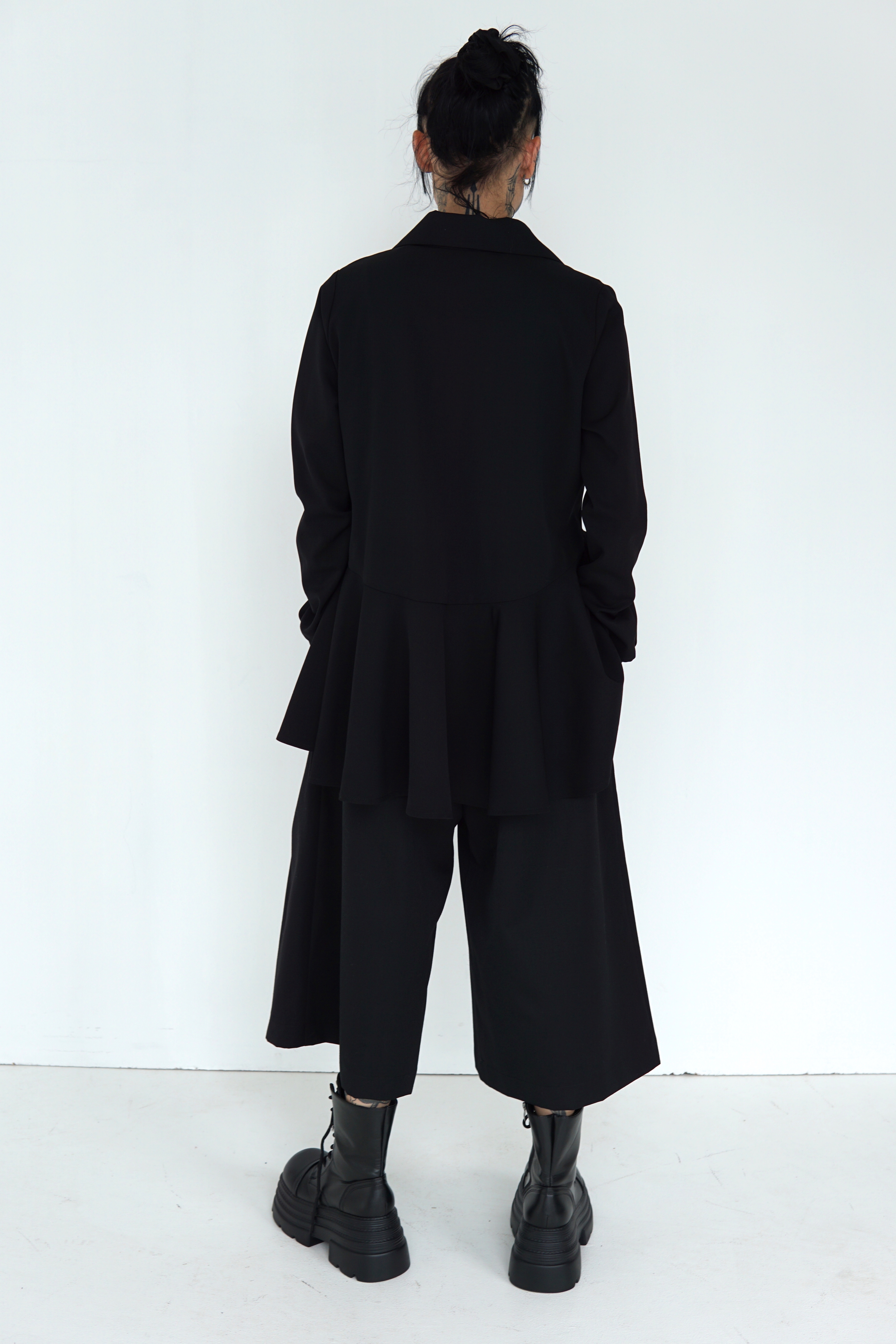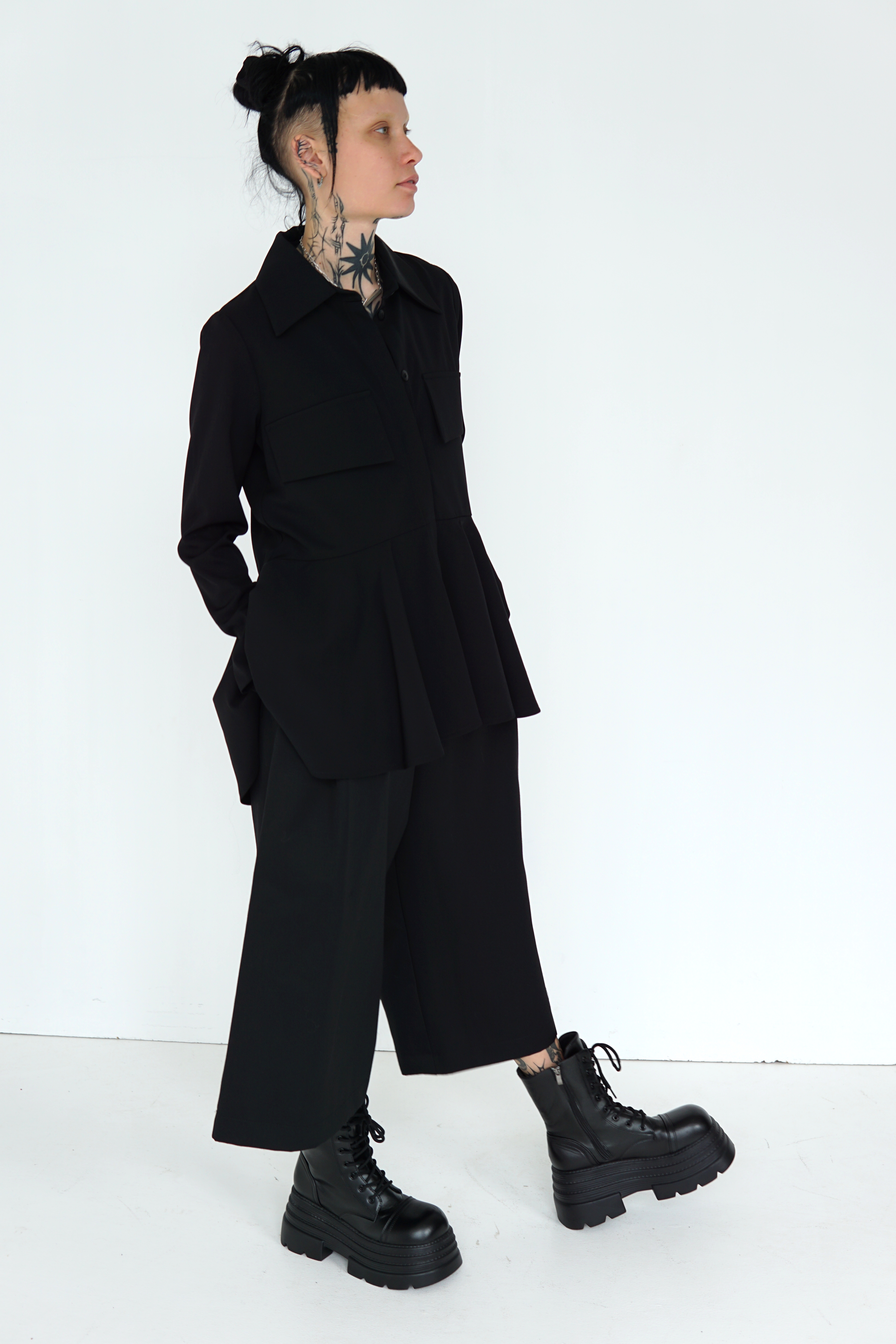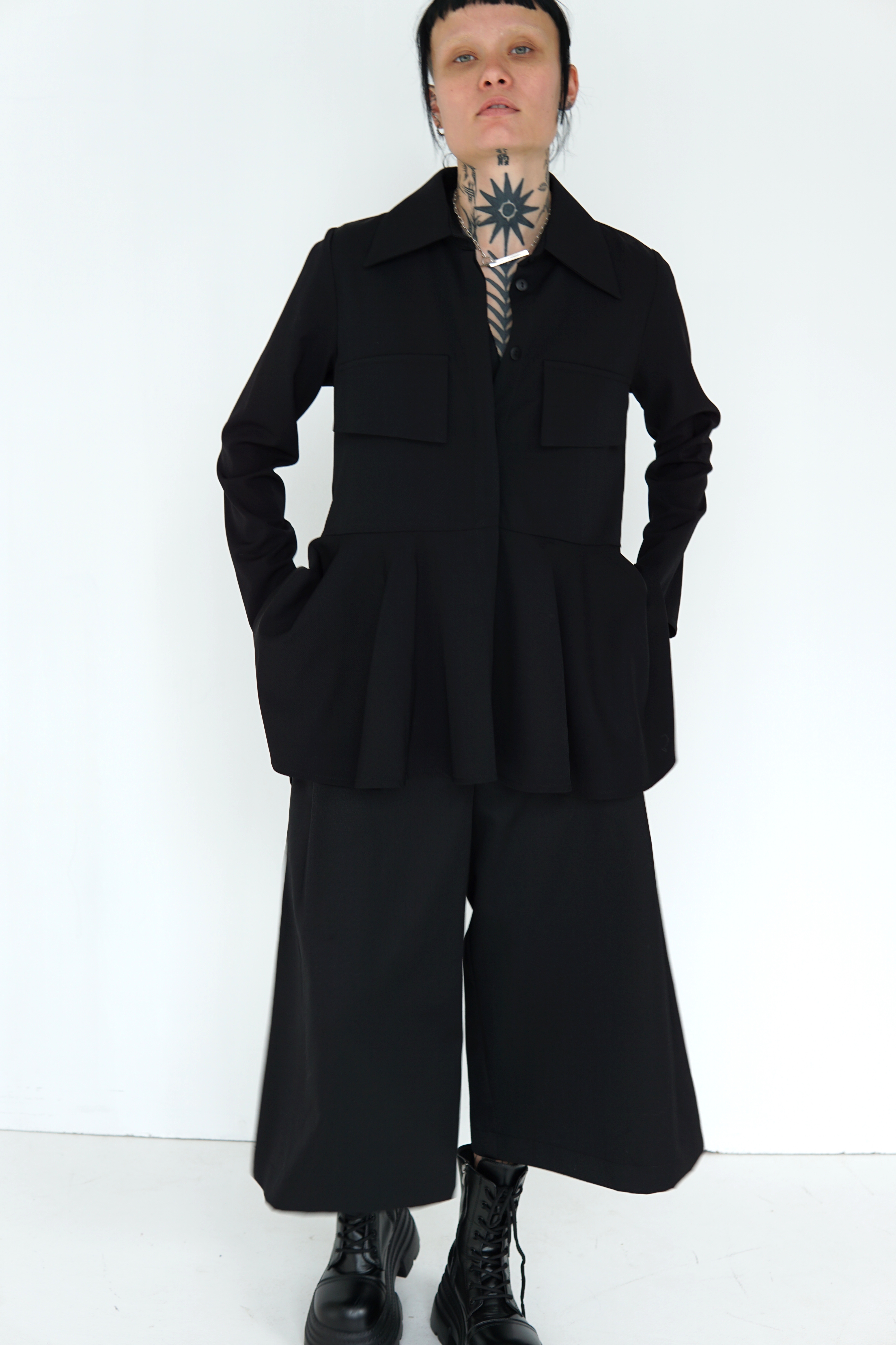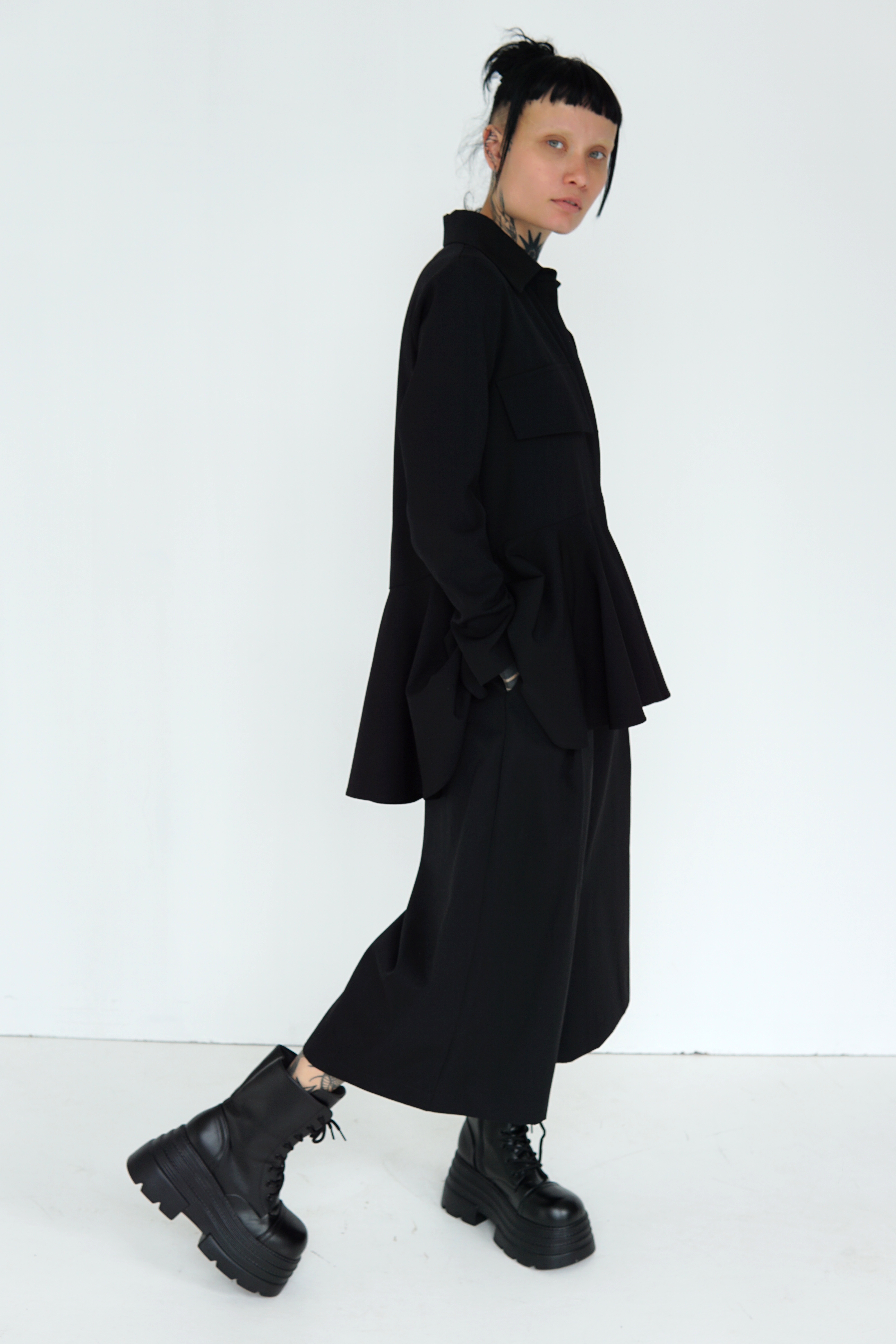 BLACK WOOL FLARED SHIRT
